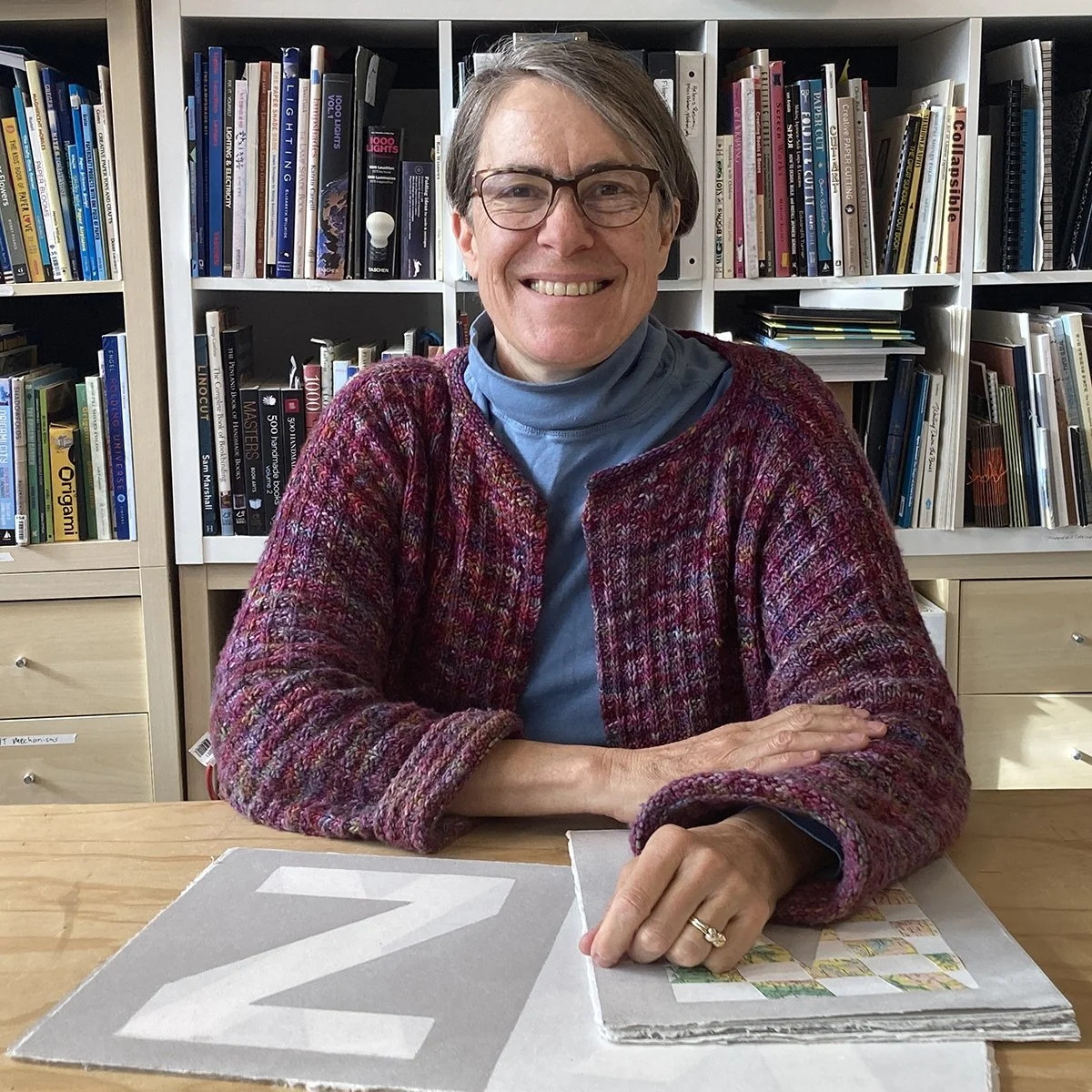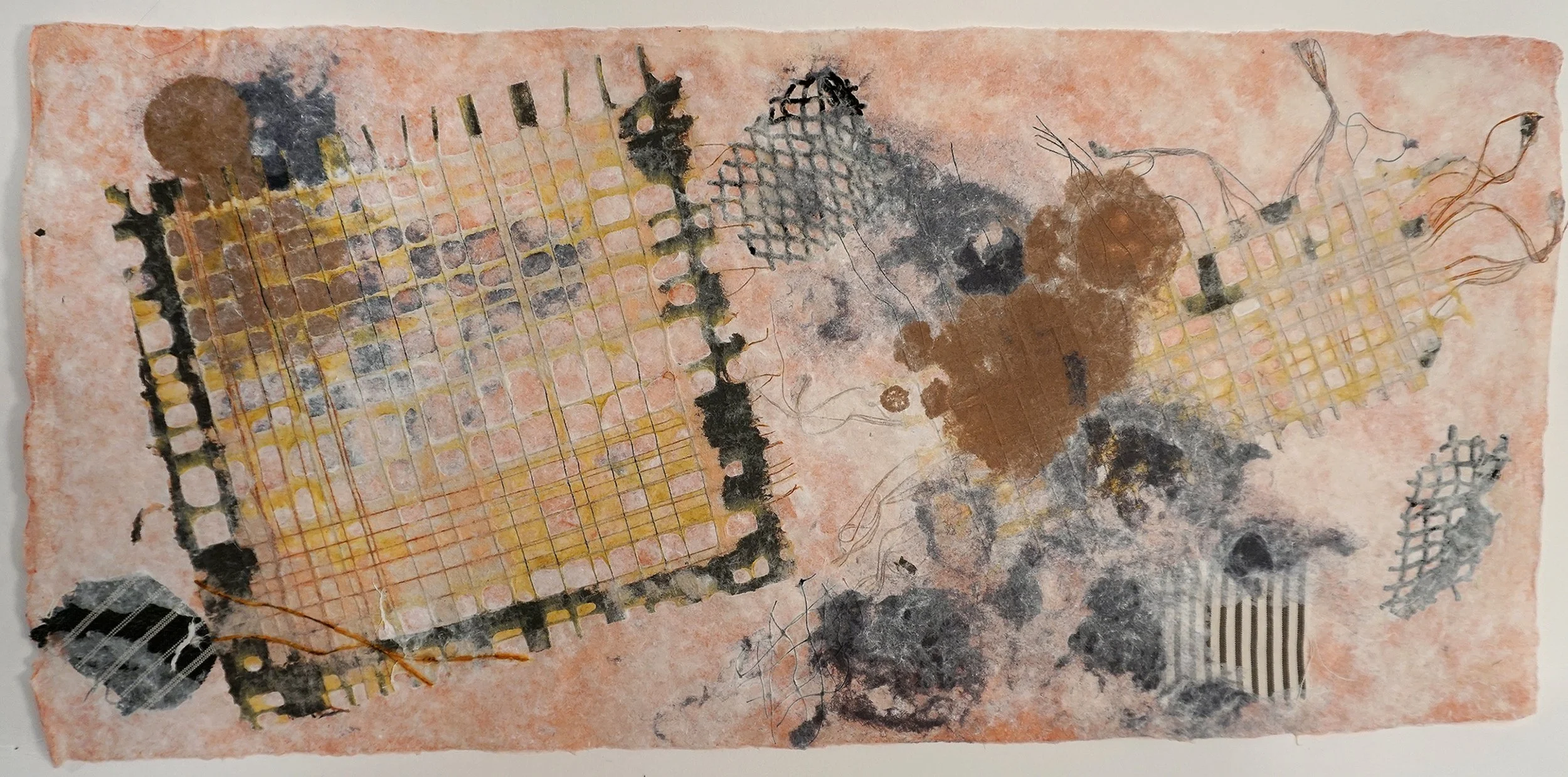 Artist Bio — Lynn Sures creates multi-media works examining the juncture of geology, physics and the origins of humans. She has been a SARF Fellow in Kenya and a US State Department American Artist Abroad in Sri Lanka. Sures has been an artist-in-residence Museu Molí Paperer de Capellades, Spain; and the Press at the Palace of the Governors, Santa Fe, NM. Collections include US Dept. of State; US Library of Congress; Yale University; Schomburg Collection at NY Public Library; Smithsonian Cooper-Hewitt Museum; MCF, Fabriano, Italy; MAP, Bangalore, India; and Bibliotheca Alexandrina, Egypt. Sures is Professor Emerita, Corcoran College of Art & Design, DC.