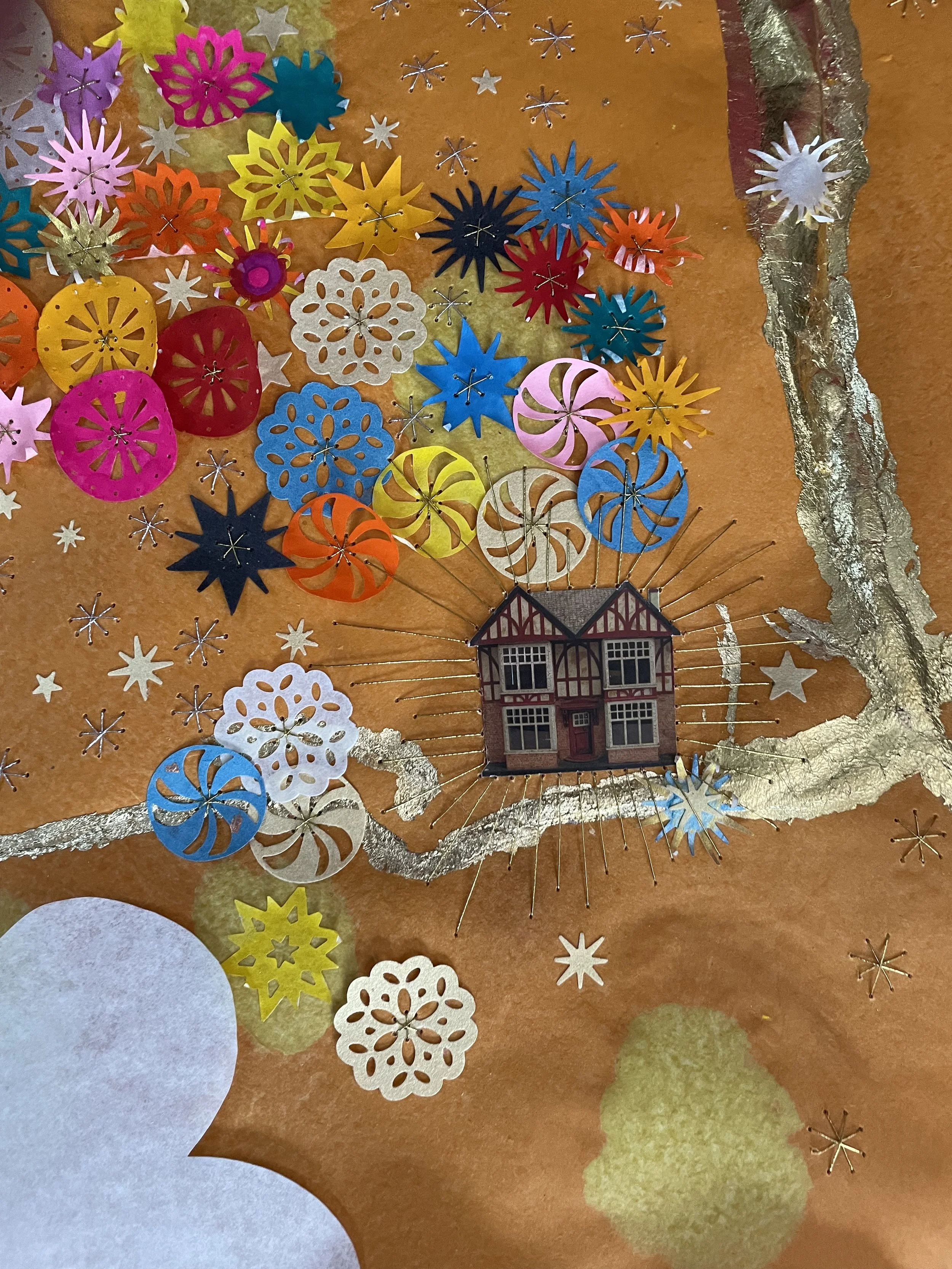 Artist Bio — Lauren Krukowski is an abstract artist and papermaker drawn to color relationships evoking deep emotional responses, similar to the musical frisson she experiences from vocal harmonies. Responses that are deeply felt but difficult to describe with words. Her abstractions center on processing the environment surrounding her and finding awe in small moments and material inquiry. She stretches objects and ideas from her immediate surroundings beyond the familiar and expected through handmade paper and fabric collage. Moving fluidly through multiple artistic processes–such as printmaking, hand papermaking, and sewing–her artworks often undergo various iterations as they are repeatedly layered, cut, and sewn.