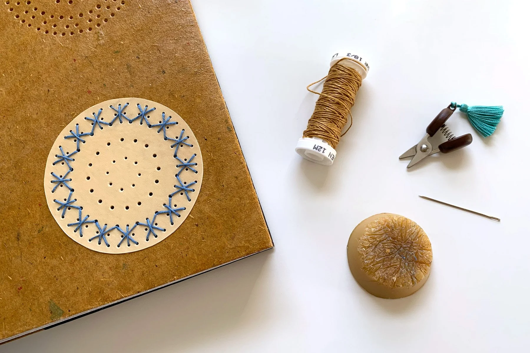 2022, Handmade abaca paper with embedded thread drawing; hand-stitched with embroidery floss, 17 x 14”