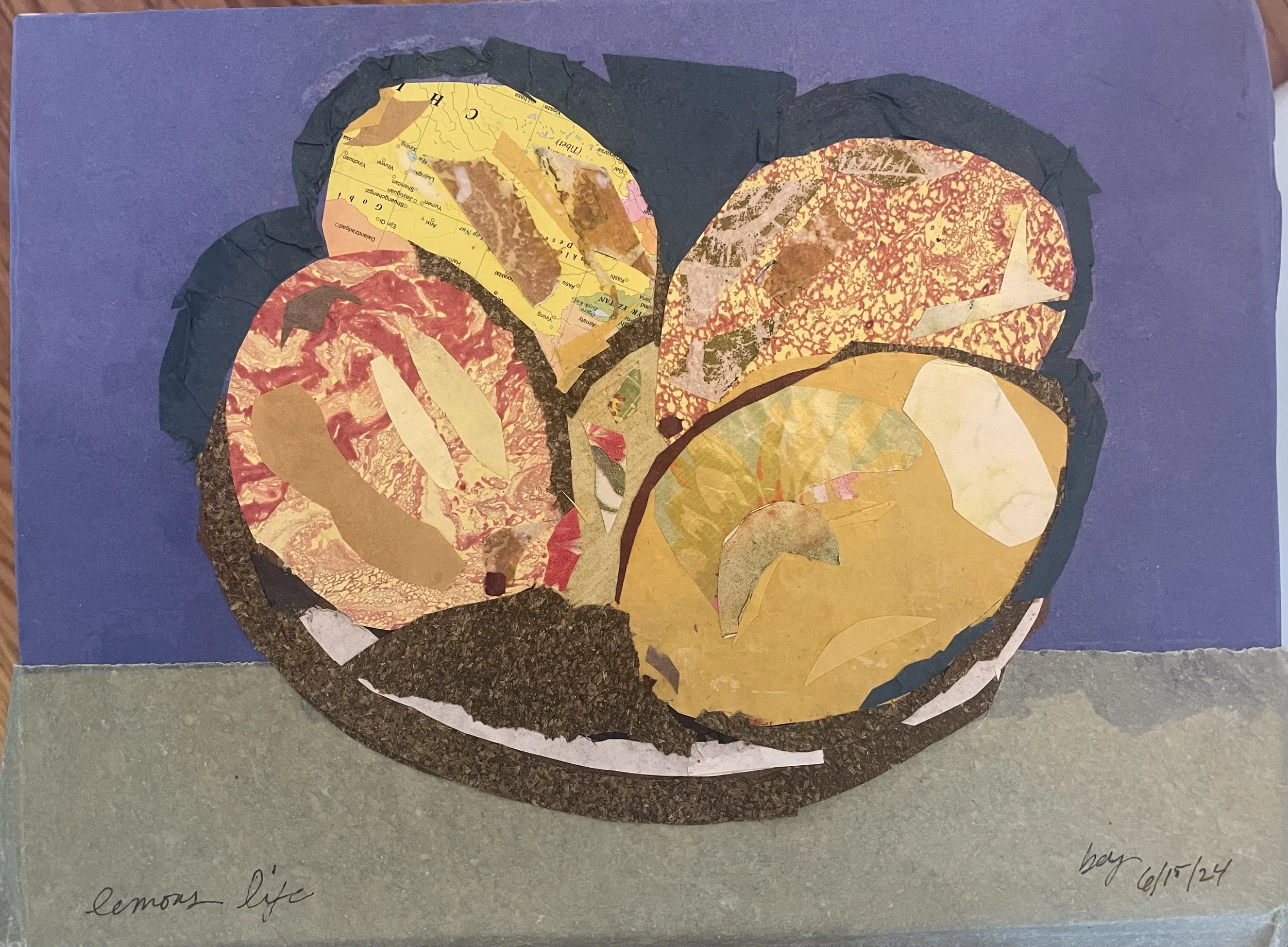 Artist Bio — I am a passionate photographer who got seduced by the possibilities of papermaking. Papermaking opened a new world of expression to me and expanded my vocabulary to collage, artist books, sculpture. My influences are chance, the natural world, literature, and my Ph.D. in philosophy. I aim to balance rigor and playfulness, and to reuse all the scrap materials in my house.