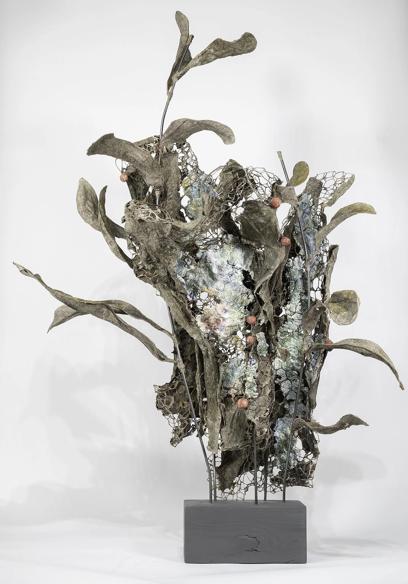Artist Bio — Bonnie Ferrill Roman (BFA CU-Denver, MFA U of MN) is a Colorado mixed-media sculptor and installation artist working with cast & formed handmade paper, fibers, ceramics, and mixed media. Her work, reminiscent of natural environments, exhibits a contemporary aesthetic resonating with metaphoric underpinnings while evoking a visceral experience of wonder. She has exhibited since 1992 in local, regional, and national exhibitions, to acclaim. She taught Art & Design at several Colorado Universities for 19 years, and visual art for 2 years at a DPS K-8 School. In 2022, she began teaching Ceramics, Jewelry, Sculpture, and Fibers at St. Mary’s Academy High School.